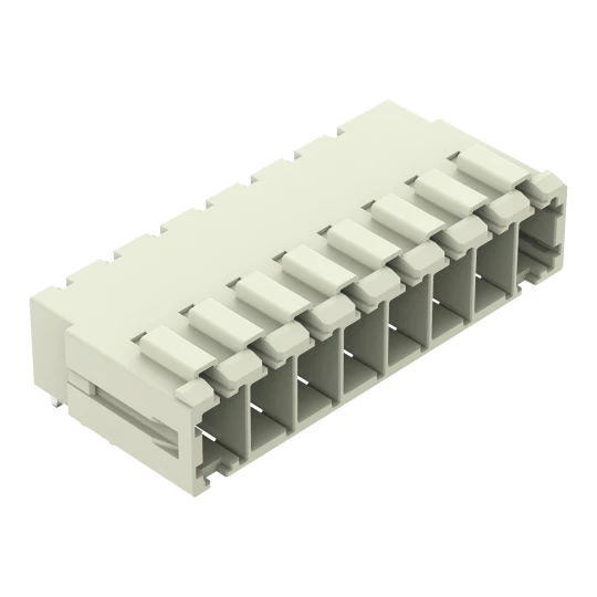 wtyk THT; pin lutowniczy 1,0 x 1,2 mm; konstrukcja kątowa; 100% ochrona przed błędnym połączeniem; raster 7,62 mm; 8-bieg.; jasnoszary