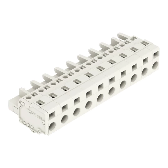 gniazdo 1-przewodowe; CAGE CLAMP®; 2,5 mm²; raster 7,5 mm; 10-bieg.; 100% ochrona przed błędnym połączeniem; stopki zatrzaskowe; 2,50 mm²; jasnoszary