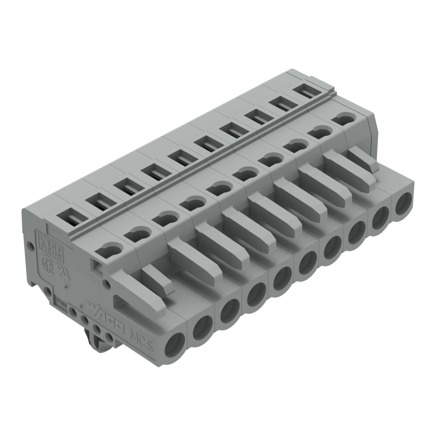 gniazdo 1-przewodowe; CAGE CLAMP®; 2,5 mm²; raster 5 mm; 10-bieg.; stopki zatrzaskowe; szary