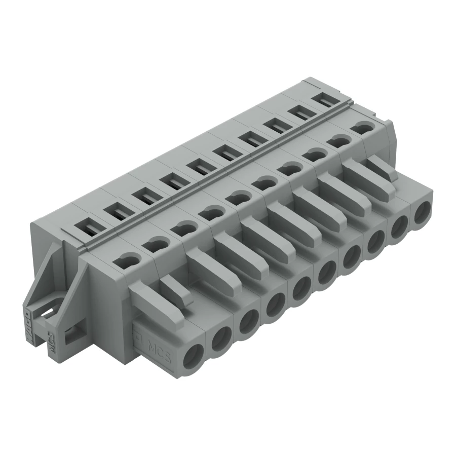 gniazdo 1-przewodowe; CAGE CLAMP®; 2,5 mm²; raster 5 mm; 10-bieg.; kołnierz mocujący; szary