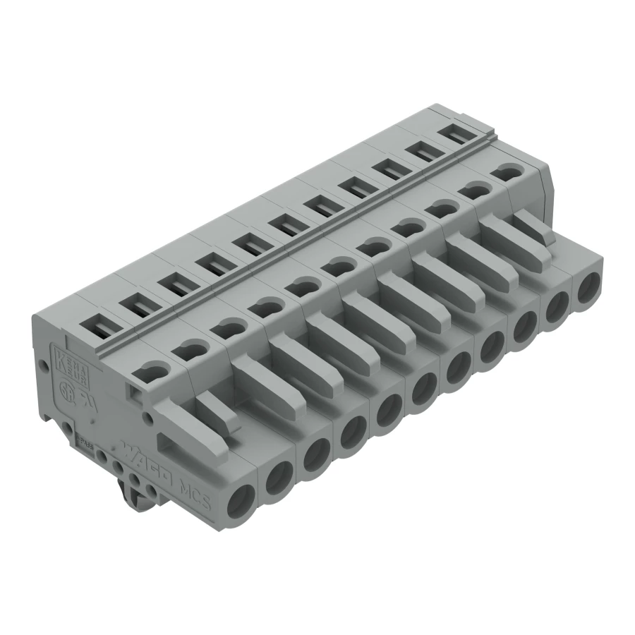 gniazdo 1-przewodowe; CAGE CLAMP®; 2,5 mm²; raster 5 mm; 11-bieg.; stopki zatrzaskowe; szary