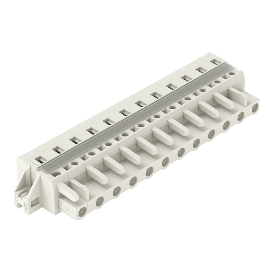 gniazdo 1-przewodowe; CAGE CLAMP®; 2,5 mm²; raster 7,5 mm; 12-bieg.; 100% ochrona przed błędnym połączeniem; kołnierz mocujący; 2,50 mm²; jasnoszary