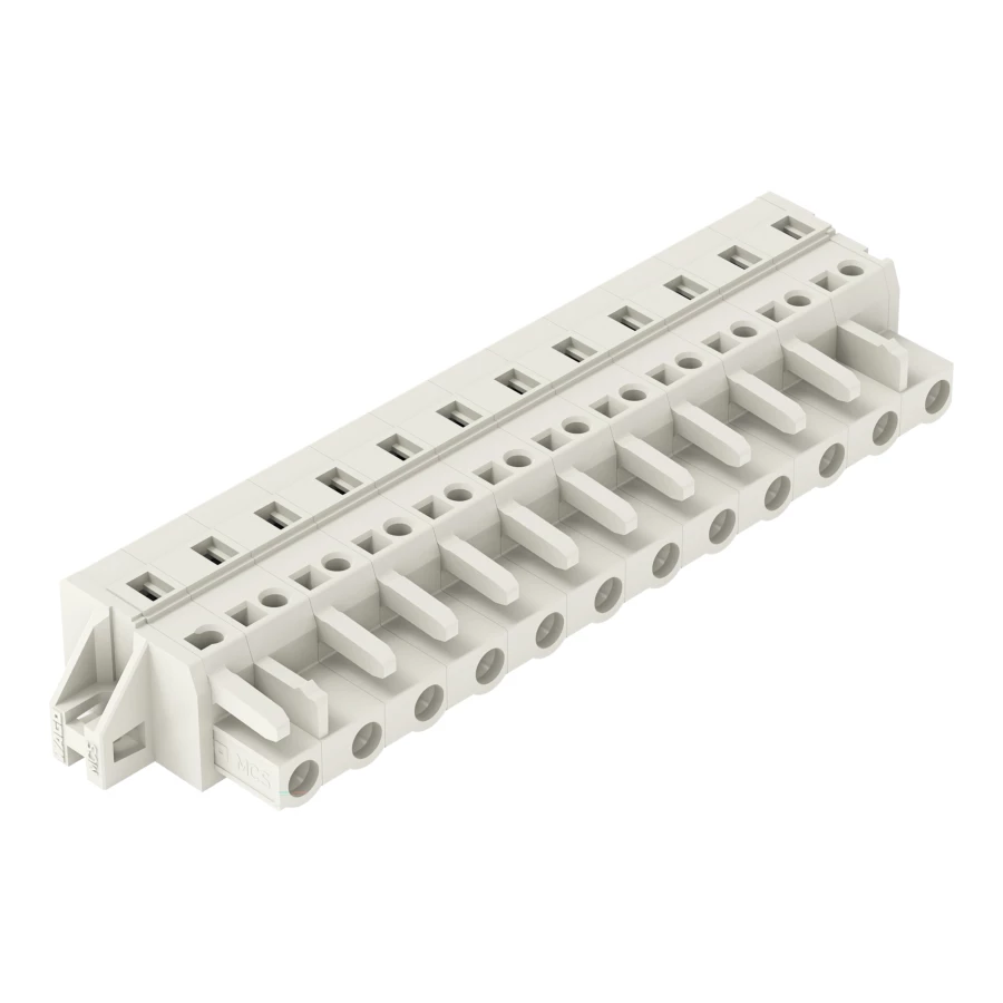 gniazdo 1-przewodowe; CAGE CLAMP®; 2,5 mm²; raster 7,5 mm; 12-bieg.; 100% ochrona przed błędnym połączeniem; kołnierz mocujący; 2,50 mm²; jasnoszary