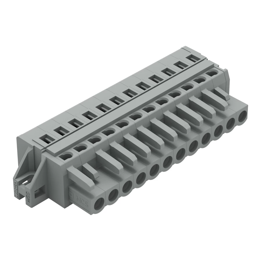 gniazdo 1-przewodowe; CAGE CLAMP®; 2,5 mm²; raster 5 mm; 12-bieg.; kołnierz mocujący; szary