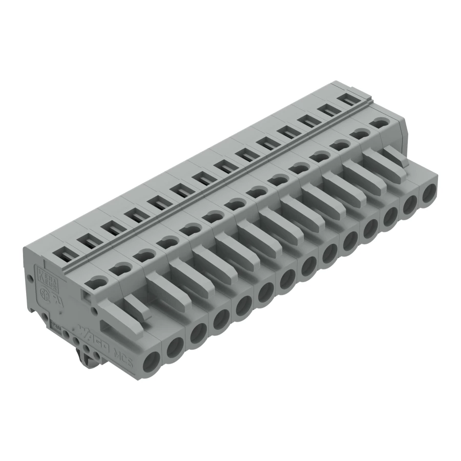 gniazdo 1-przewodowe; CAGE CLAMP®; 2,5 mm²; raster 5 mm; 14-bieg.; stopki zatrzaskowe; szary