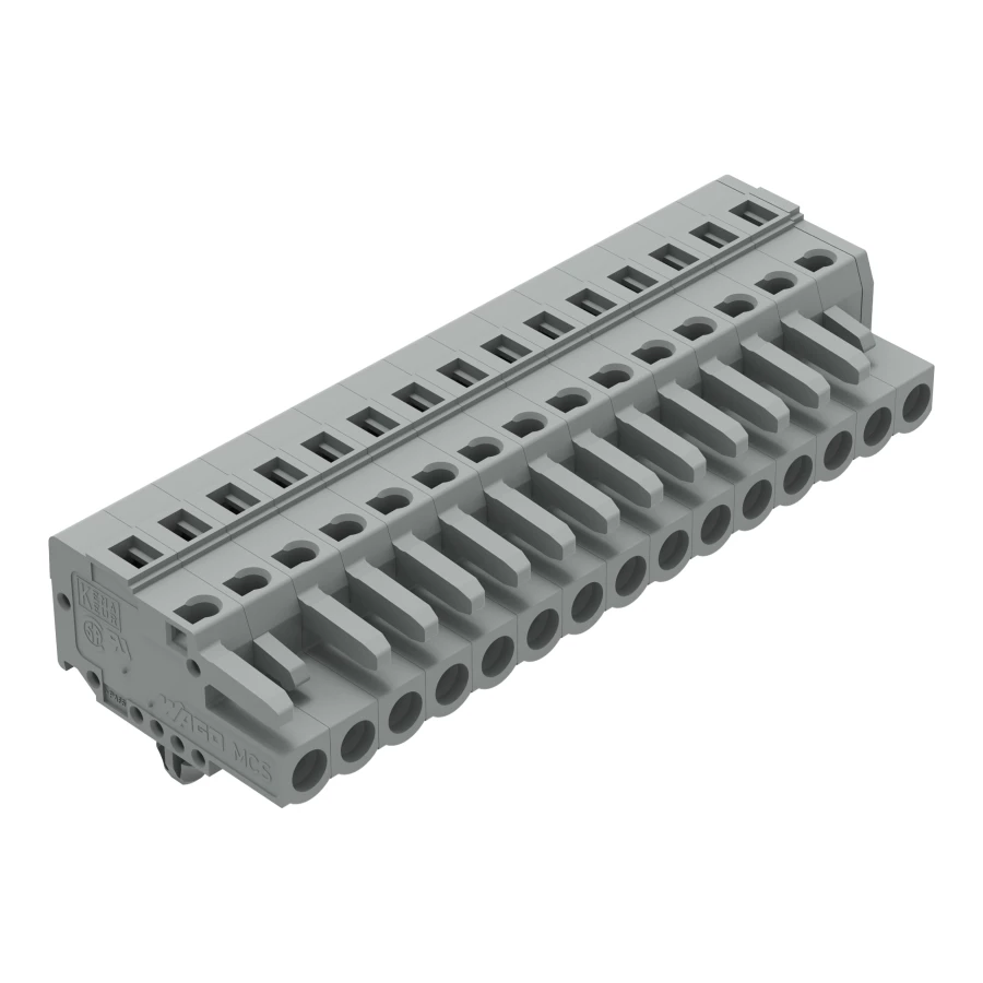 gniazdo 1-przewodowe; CAGE CLAMP®; 2,5 mm²; raster 5 mm; 15-bieg.; stopki zatrzaskowe; szary