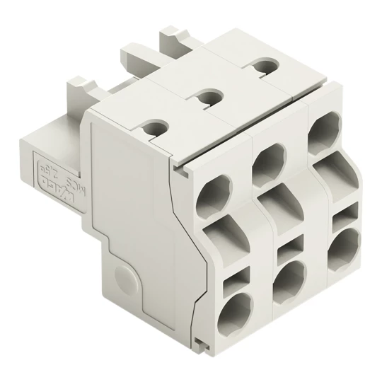 gniazdo 2-przewodowe; Push-in CAGE CLAMP®; 2,5 mm²; raster 7,5 mm; 3-bieg.; 100% ochrona przed błędnym połączeniem; ze zintegrowaną ścianką końcową; 2,50 mm²; jasnoszary