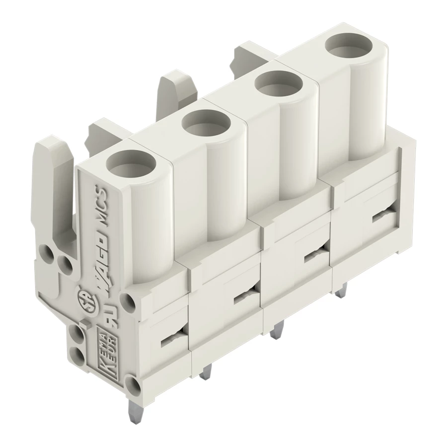 gniazdo THT; konstrukcja prosta; raster 7,5 mm; 4-bieg.; 100% ochrona przed błędnym połączeniem; pin lutowniczy 0,6 x 1,0 mm; jasnoszary