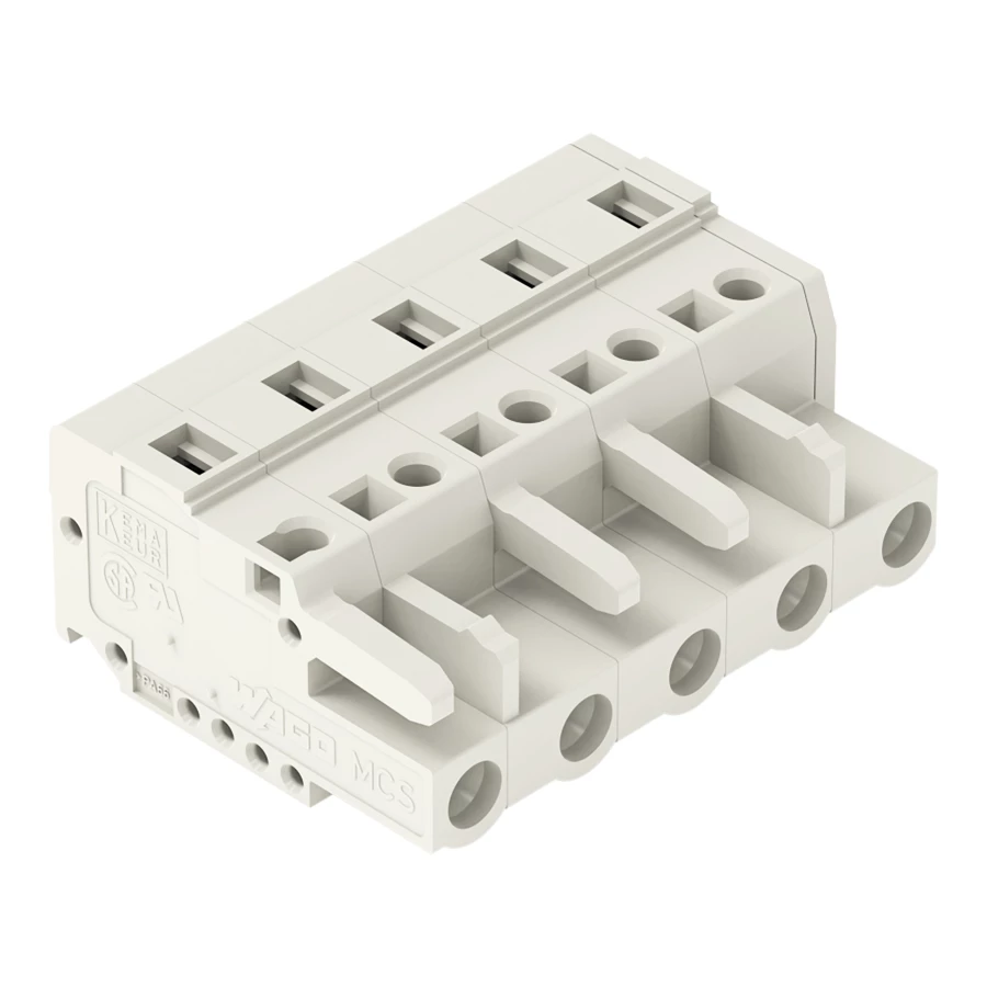 gniazdo 1-przewodowe; CAGE CLAMP®; 2,5 mm²; raster 7,5 mm; 5-bieg.; 100% ochrona przed błędnym połączeniem; 2,50 mm²; jasnoszary