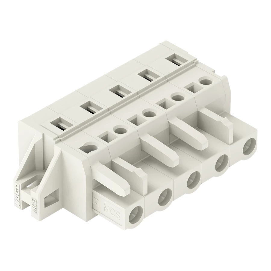 gniazdo 1-przewodowe; CAGE CLAMP®; 2,5 mm²; raster 7,5 mm; 5-bieg.; 100% ochrona przed błędnym połączeniem; kołnierz mocujący; 2,50 mm²; jasnoszary