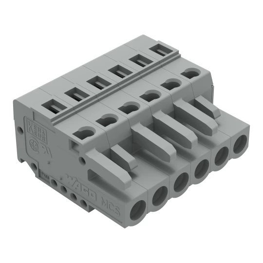gniazdo 1-przewodowe; CAGE CLAMP®; 2,5 mm²; raster 5 mm; 6-bieg.; ze zintegrowaną ścianką końcową; szary