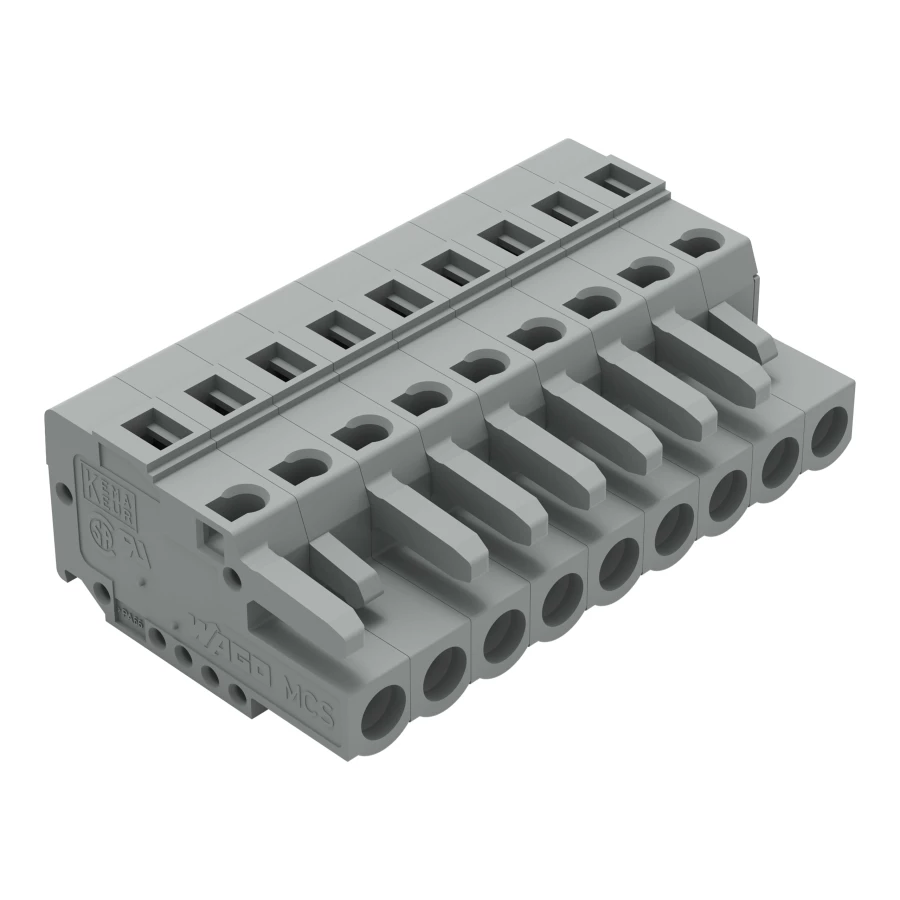 gniazdo 1-przewodowe; CAGE CLAMP®; 2,5 mm²; raster 5 mm; 9-bieg.; ze zintegrowaną ścianką końcową; szary