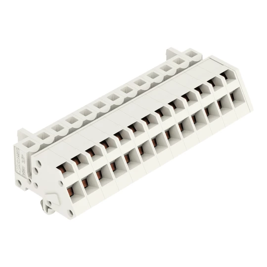 gniazdo 1-przewodowe kątowe; CAGE CLAMP®; 2,5 mm²; raster 5 mm; 13-bieg.; 100% ochrona przed błędnym połączeniem; stopki zatrzaskowe; 2,50 mm²; jasnoszary