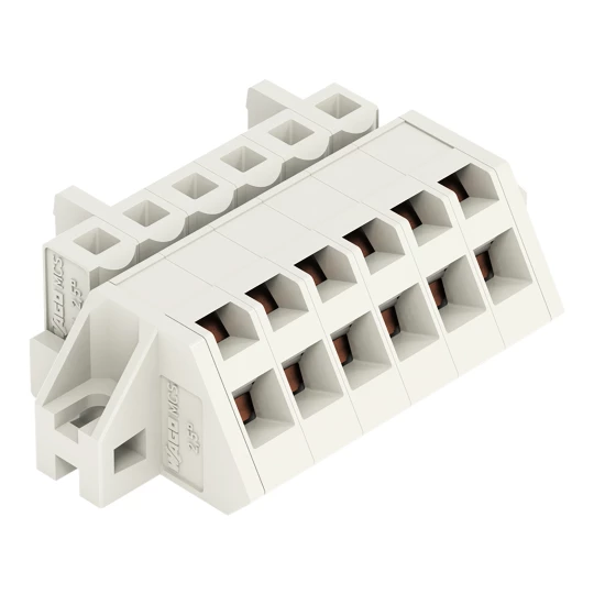 gniazdo 1-przewodowe kątowe; CAGE CLAMP®; 2,5 mm²; raster 5 mm; 6-bieg.; 100% ochrona przed błędnym połączeniem; kołnierz mocujący; 2,50 mm²; jasnoszary