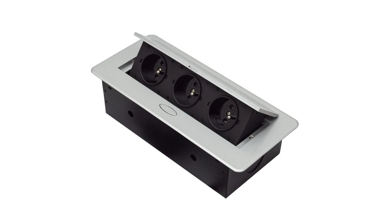 Gniazdo meblowe wpuszczane w blat potrójne 3x 230V 2P+Z z przewodem 1,5m metalowe srebrne ADELID