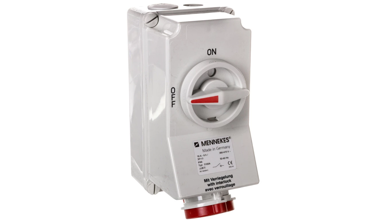 Gniazdo naścienne z rozłącznikiem 16A 4P 6h 400V IP44 5100A MEN5100A