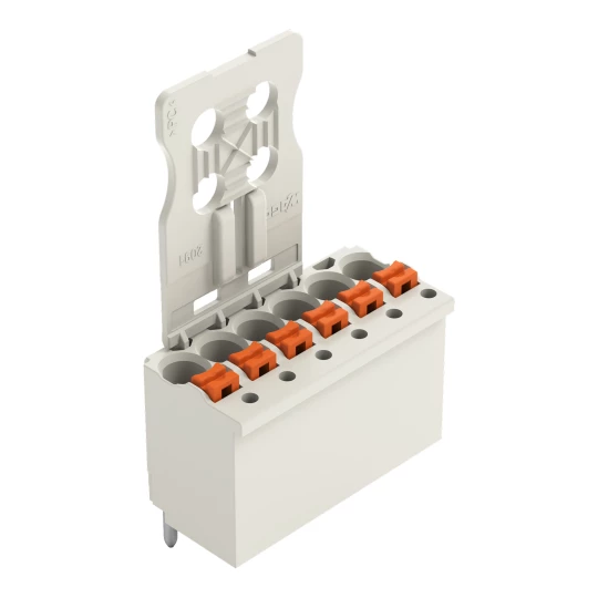 gniazdo THT 1-przewodowe proste; przycisk; Push-in CAGE CLAMP®; 1,5 mm²; raster 3,5 mm; 6-bieg.; pin lutowniczy Ø 1,0 mm; płytka odciążająca; 1,50 mm²; jasnoszary