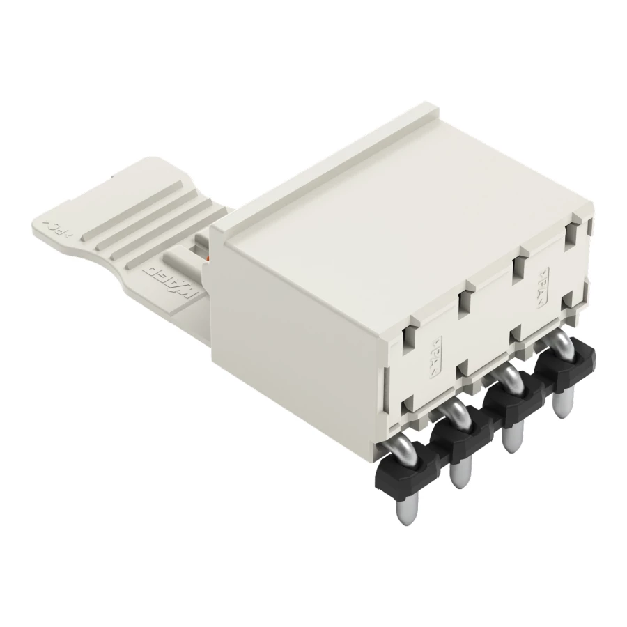 gniazdo THT 1-przewodowe kątowe; przycisk; Push-in CAGE CLAMP®; 2,5 mm²; raster 5 mm; 4-bieg.; pin lutowniczy Ø 1,4 mm; płytka odciążająca; 2,50 mm²; jasnoszary
