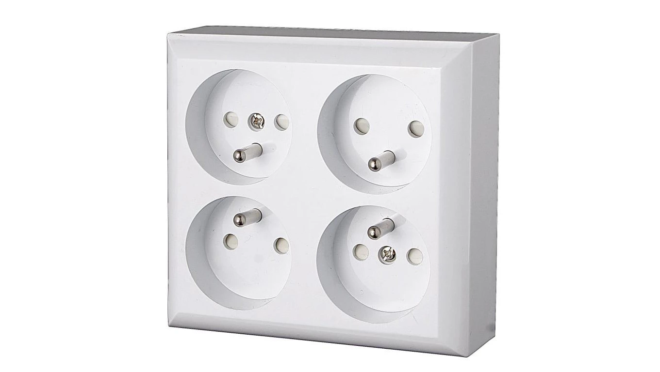 Gniazdo poczwórne, czterokrotne natynkowe z uziemieniem, IP20, białe, GAO / 20457