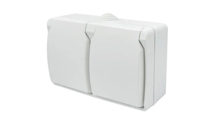HYDRO Gniazdo hermetyczne podwójne z/u IP44 z klapką białe 120436