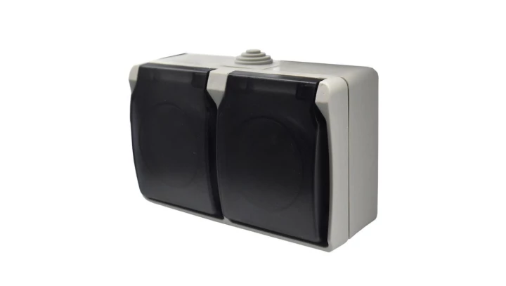HYDRO Gniazdo hermetyczne podwójne z/u IP44 z klapką klinkier 122236