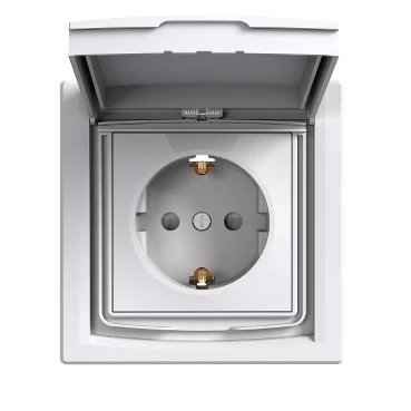 Gniazdo SCHUKO IP44 z ramką (1-krotne), białe ASFORA o numerze katalogowym EPH3100321 w kategorii Gniazda podtynkowe, Gniazda instalacyjne. Produkt wyprodukowany przez markę SCHNEIDER ELECTRIC, seria ASFORA.