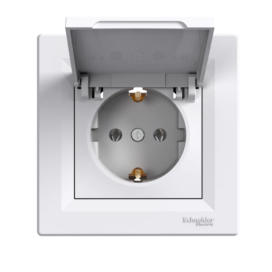 Gniazdo pojedyncze Asfora SCHUKO z/u 2P+Z z klapką białe z ramką EPH3100121