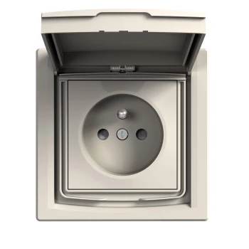 VENA Gniazdo bryzgoszczelne z/u IP44 z przesłonami klapka transparentna krem 510339