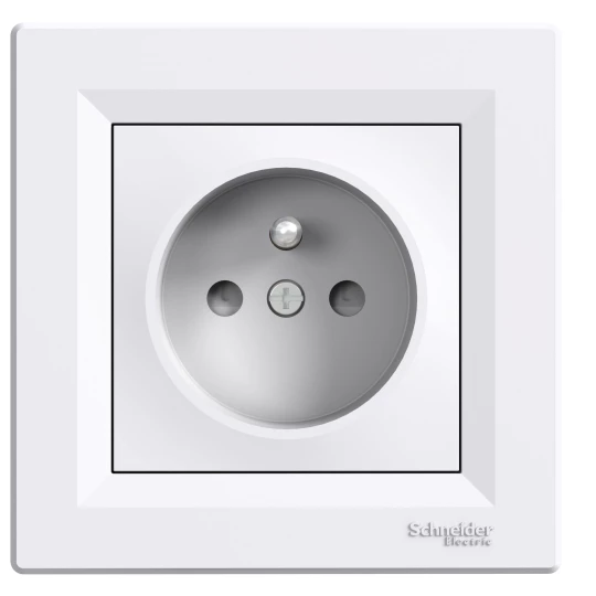 Gniazdo pojedyncze z uziemieniem z przesłonami, białe ASFORA o numerze katalogowym EPH2800221 w kategorii Gniazda podtynkowe, Gniazda instalacyjne. Produkt wyprodukowany przez markę SCHNEIDER ELECTRIC, seria ASFORA.
