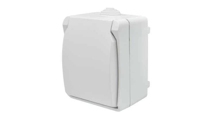 Simon Aquarius Gniazdo hermetyczne pojedyncze z/u IP54 z przesłoną torów i klapką pełną białe AQGZ1z/11