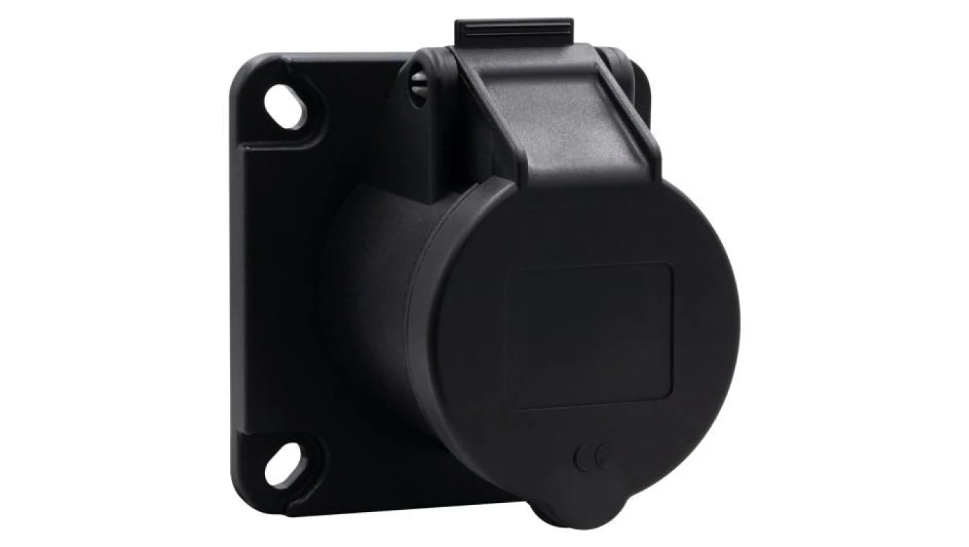 Gniazdo przemysłowe tablicowe proste 16A 3p czarne o numerze katalogowym   F7.0151 w kategorii Gniazda siłowe>Gniazda tablicowe. Produkt wyprodukowany przez markę F-ELEKTRO.