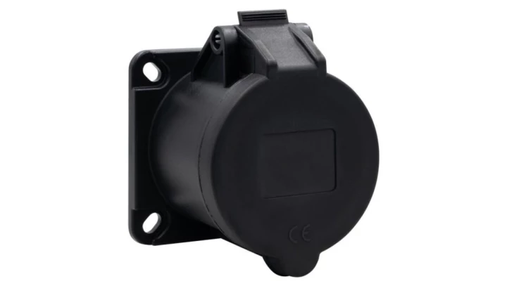 Gniazdo przemysłowe tablicowe proste 32A 3p czarne o numerze katalogowym   F7.0152 w kategorii Gniazda siłowe>Gniazda tablicowe. Produkt wyprodukowany przez markę F-ELEKTRO.