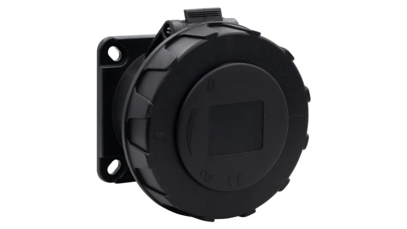 Gniazdo przemysłowe tablicowe proste 32A 3p czarne o numerze katalogowym   F7.0154 w kategorii Gniazda siłowe>Gniazda tablicowe. Produkt wyprodukowany przez markę F-ELEKTRO.