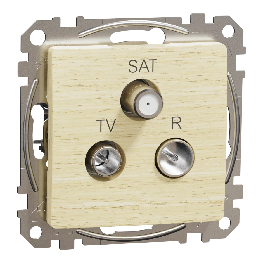 Gniazdo R/TV/SAT przelotowe (7dB), brzoza, efekt drewna, Sedna Design i Elements SDD180484