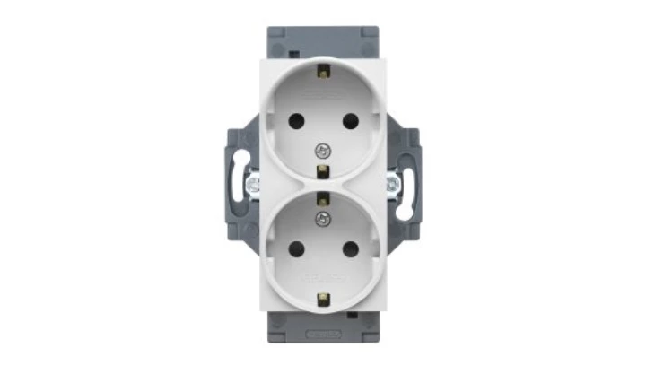 Gniazdo Schuko 2P+E 16A podwójne, z przesłoną styków, z uziemieniem, zaciski śrubowe, biały, Dahlia GW35204W