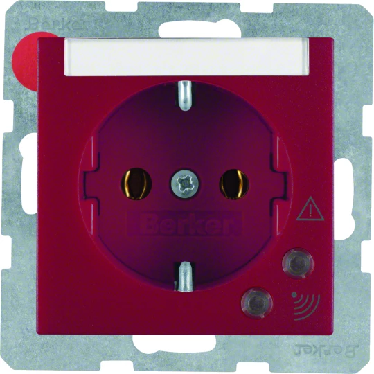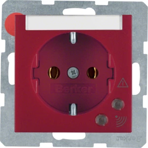 Gniazdo SCHUKO z ochroną przepięciową i polem opisowym czerwony S.1/B.1/B.3/B.7 Glas 41081962