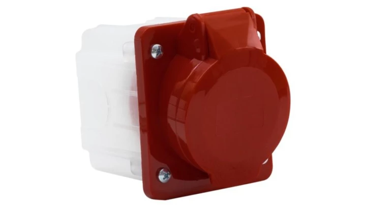 Gniazdo siłowe tablicowe skośne 16A 5p /FE/ z puszką o numerze katalogowym   F7.0076 w kategorii Gniazda siłowe>Gniazda tablicowe. Produkt wyprodukowany przez markę F-ELEKTRO.