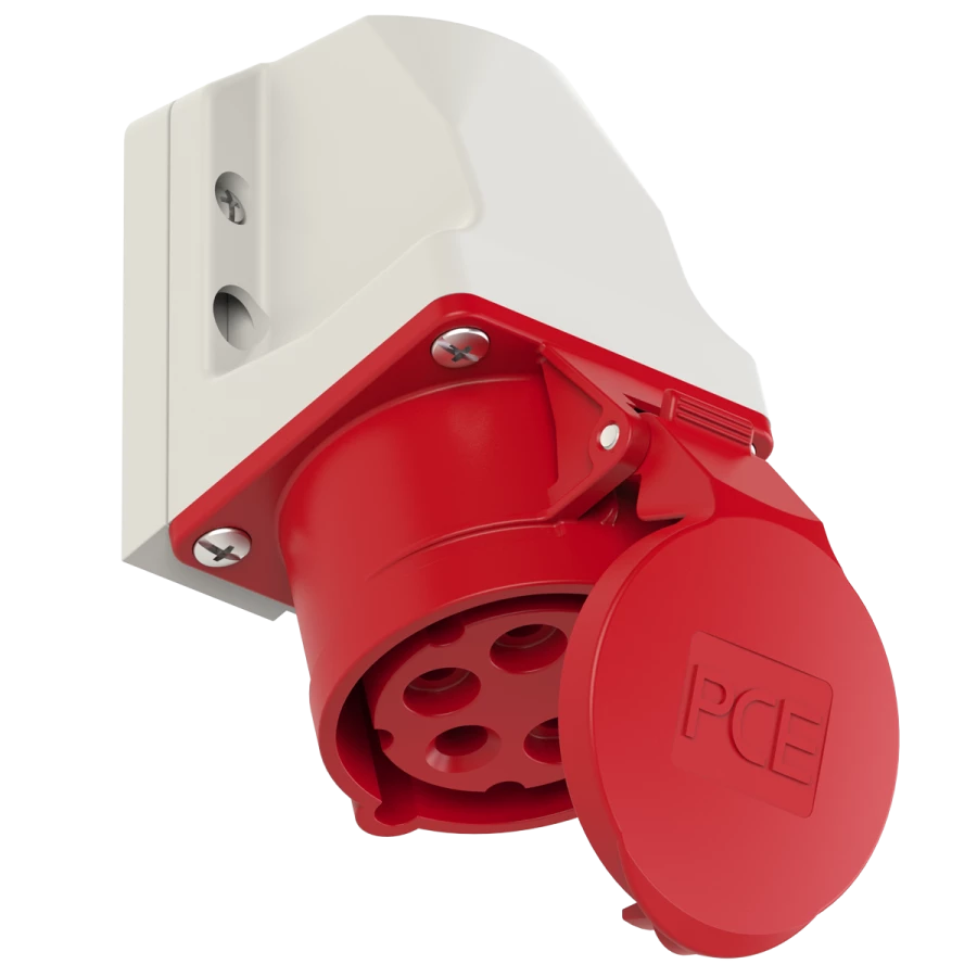 Gniazdo stałe 16A 3P+Z+N 400V, obudowa mała IP44 o numerze katalogowym 115-6K w kategorii Gniazda stałe, Gniazda siłowe. Produkt wyprodukowany przez markę PCE.
