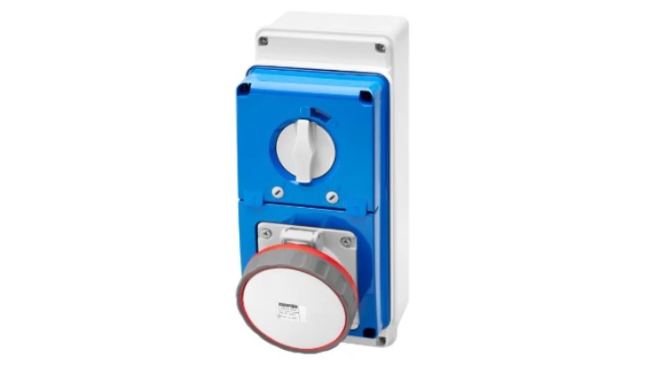 Gniazdo stałe 4P 63A 400V czerwony z rozłącznikiem miejsce na zabezpieczenie 6h IP67 GW67252N