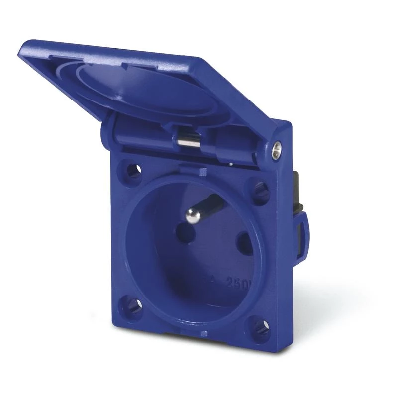 GNIAZDO TABLICOWE 1F 1X Z/U IP44 230V PROSTE 70X87 NIEBIESKI IEC