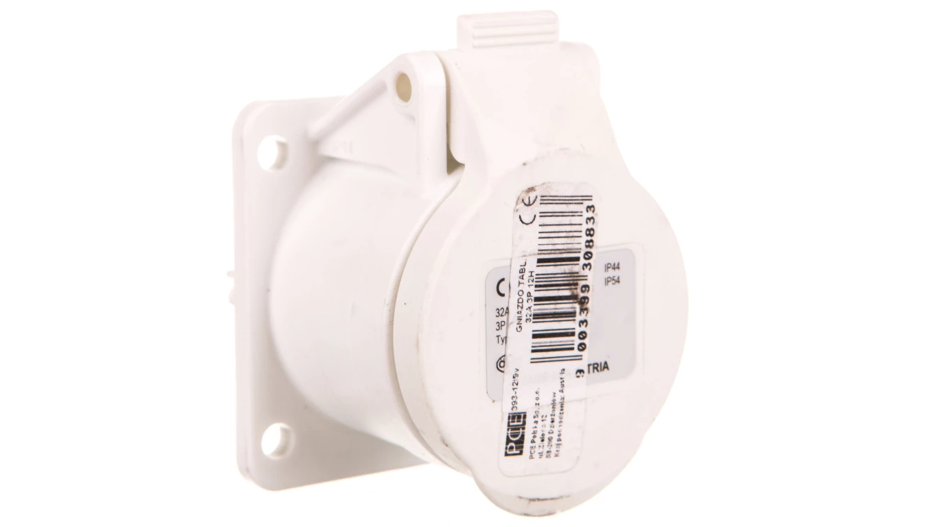 Gniazdo tablicowe 32A 3P 42V 12h białe IP44/54 393-12f9v