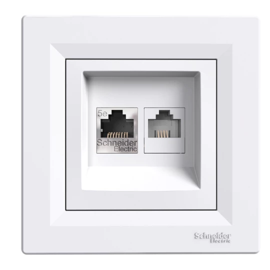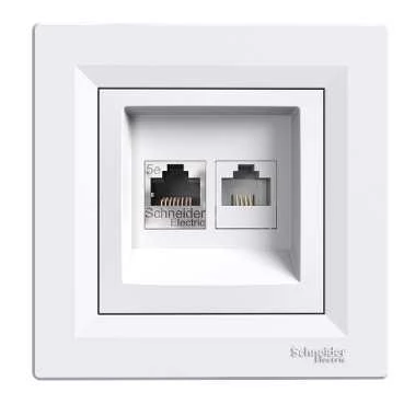 Gniazdo teleinformatyczne Asfora kat.5e RJ45 + RJ12 białe z ramką EPH4900121