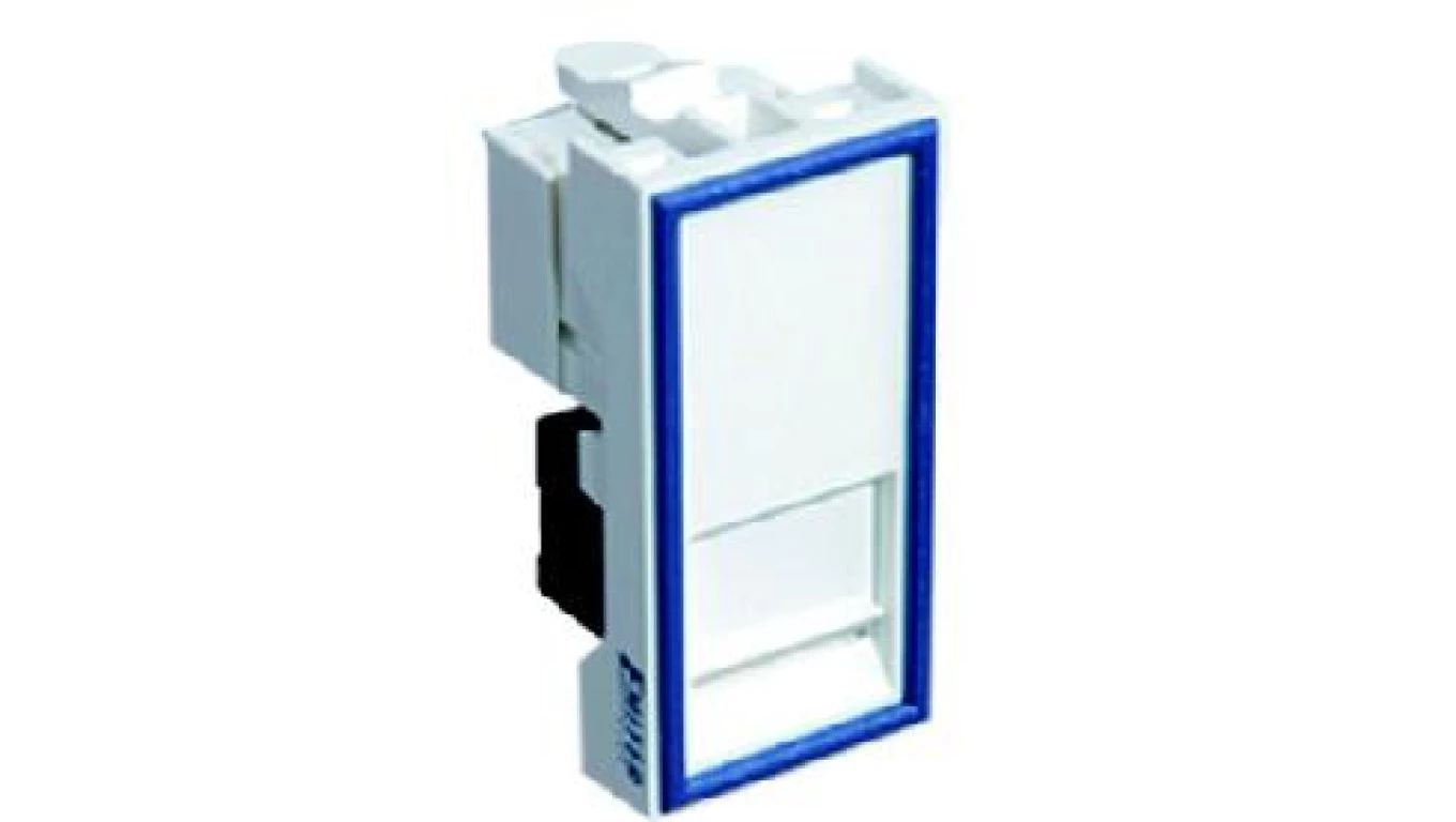 Gniazdo teleinformatyczne RJ45 UTP kat.5e z adapterem, 1-modułowe białe, niskie o numerze katalogowym DCN/TS-868K-8-C5E w kategorii Gniazda teleinformacyjne, multimedialne, Łączniki i gniazda instalacyjne. Produkt wyprodukowany przez markę EMITER, seria M45.