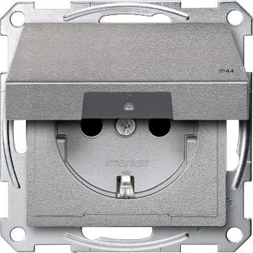 Gniazdo wtykowe SCHUKO z klapką i przesłoną, IP44, b.śrub., alu, Sys M MTN2314-0460