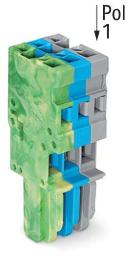 gniazdo 1-przewodowe; CAGE CLAMP®; 4 mm²; raster 5 mm; 3-bieg.; wypust kodujący; 4,00 mm²; szary/niebieski/żółto-zielony