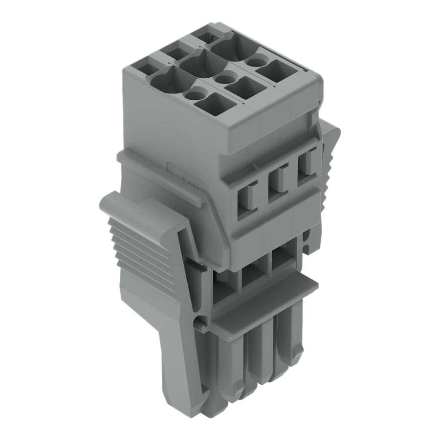 gniazdo 1-przewodowe; CAGE CLAMP®; 4 mm²; raster 5 mm; 3-bieg.; wypust kodujący; boczne zaczepy ryglujące; 4,00 mm²; szary