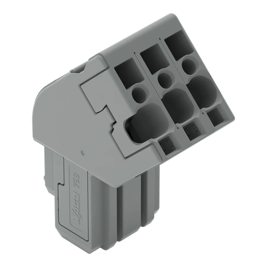 gniazdo 1-przewodowe kątowe; CAGE CLAMP®; 4 mm²; raster 5 mm; 3-bieg.; wypust kodujący; 4,00 mm²; szary