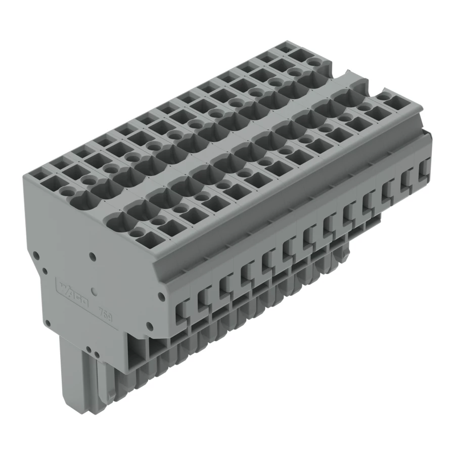 gniazdo 2-przewodowe; CAGE CLAMP®; 4 mm²; raster 5 mm; 13-bieg.; wypust kodujący; 4,00 mm²; szary