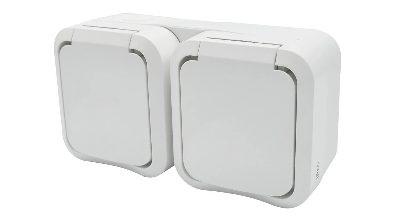 Gniazdo z uziemieniem podwójne natynkowe Aqua Pro IP55 białe / 60225