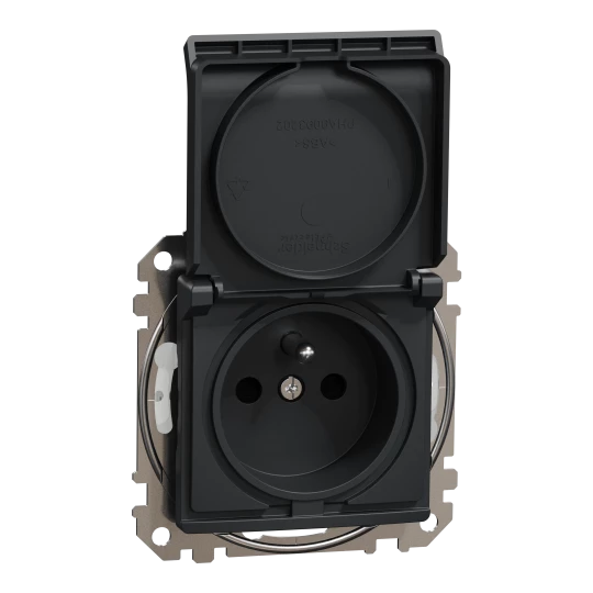 Gniazdo pojedyncze z uziemieniem, 2P+PE z przesłonami IP44 (zaciski bezgwintowe), czarny antracyt SEDNA DESIGN o numerze katalogowym SDD214014 w kategorii Gniazda podtynkowe, Gniazda instalacyjne. Produkt wyprodukowany przez markę SCHNEIDER ELECTRIC, seria SEDNA DESIGN.